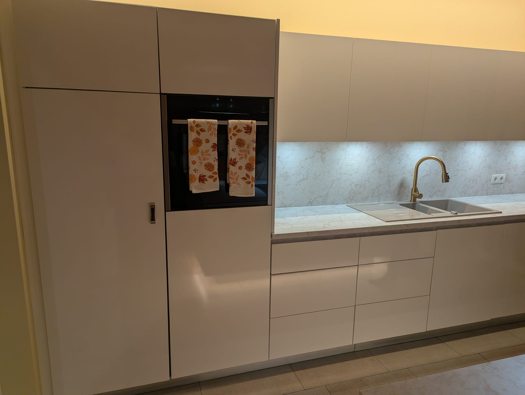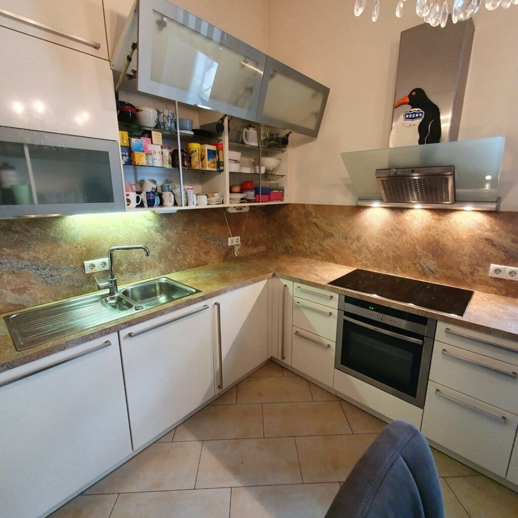 Küche foliert mit Arbeitsplatte und Küchenrückwand
